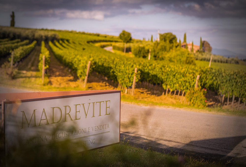 Madrevite is een familiegestuurd wijngoed dat in 2003 werd opgericht door Nicola Chiucchiurlotto in Cimbano, gemeente Castiglione del Lago, in de heuvels rond het Trasimenomeer; de naam verwijst naar een historisch houten moertje gebruikt voor het afsluiten van wijnvaten, dat symbool staat voor de verbinding met traditie.